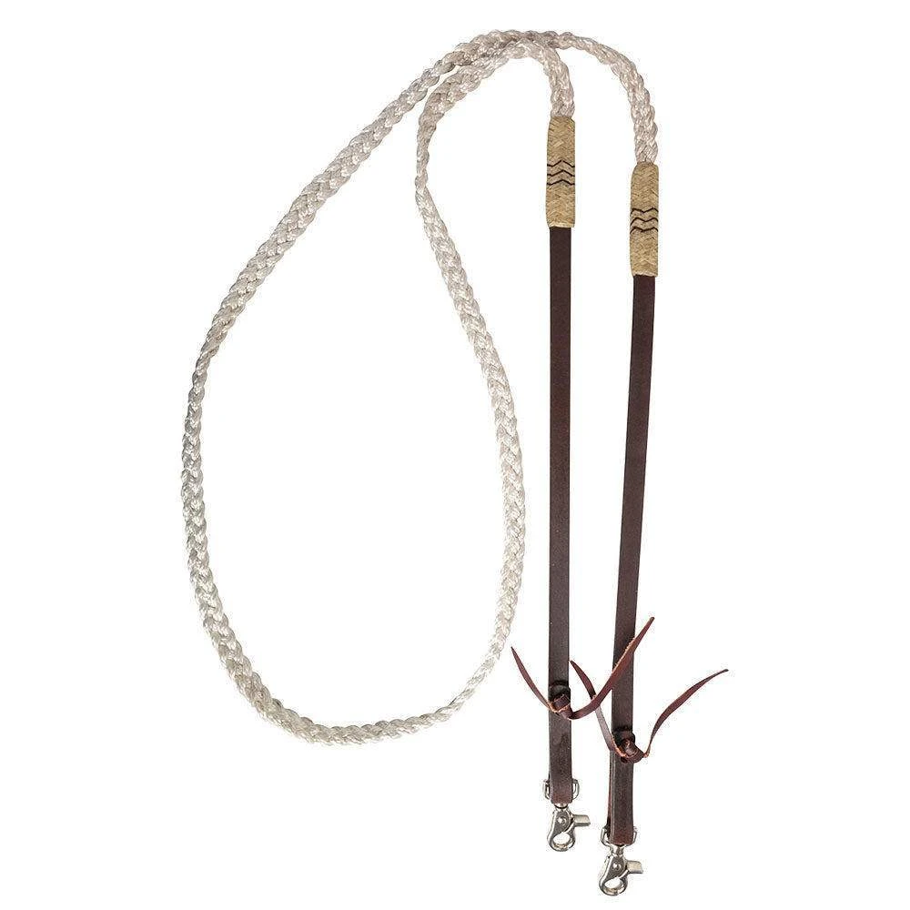 These Cashel Adjustable Flat Braid Reins have rawhide accents and adjustable chocolate leather ends for a soft, supple feel.