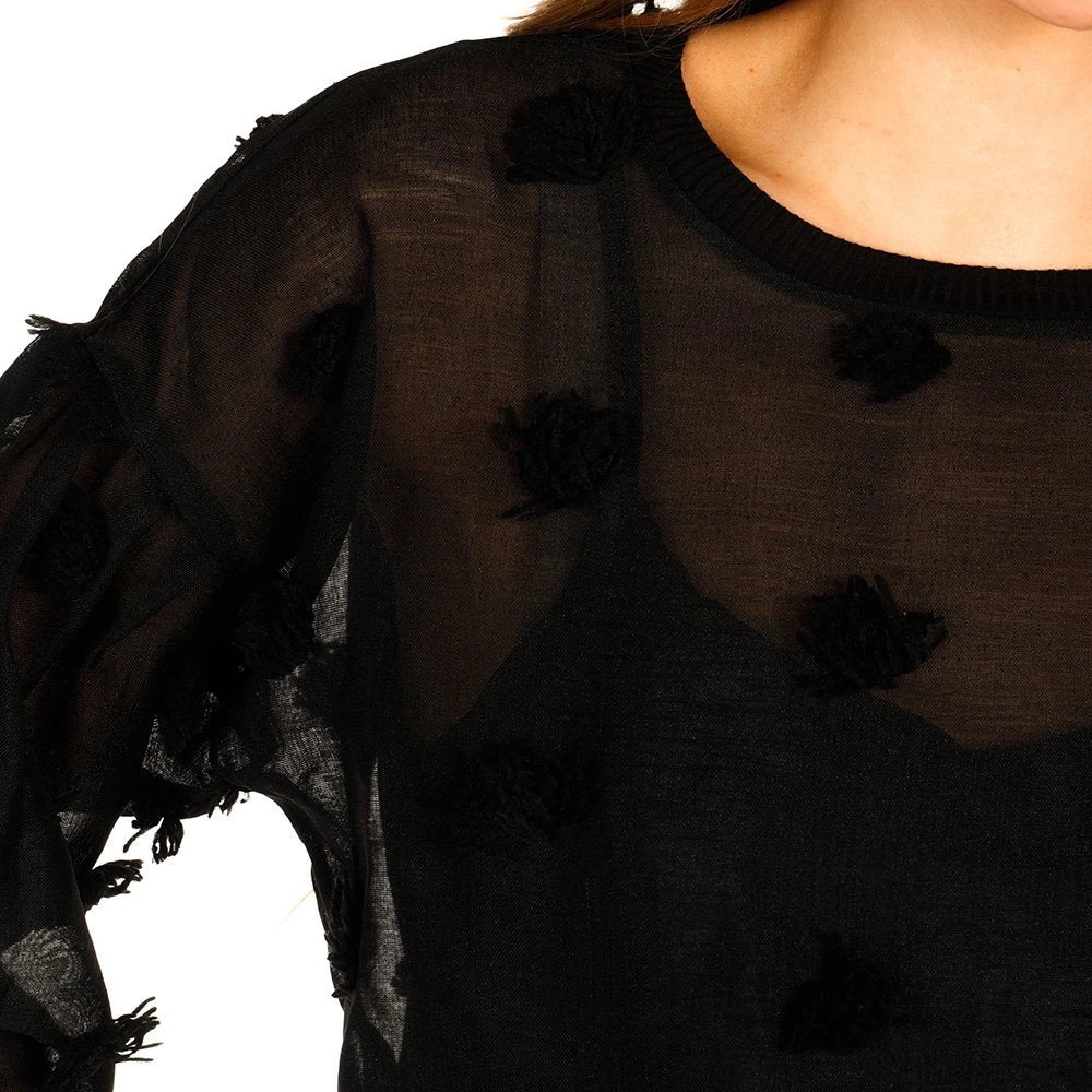Ivy Jane oversized dolman sheer black top with pleasted sleeves.