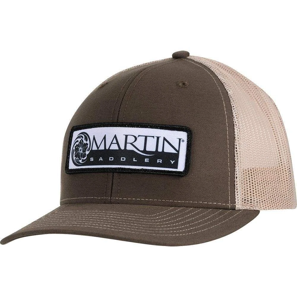 This is a brown and khaki Martin logo cap. The cap has a meshback, with snap back.