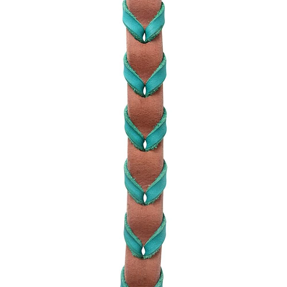 Martin Saddlery 5/8″ barrel reins with turquoise lacing.