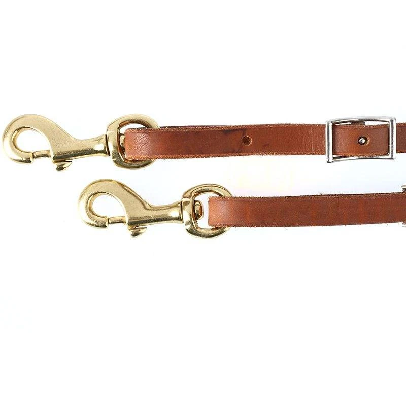 Roping Rein, hand braided nylon with latigo leather ends, and stainless steel hardware.