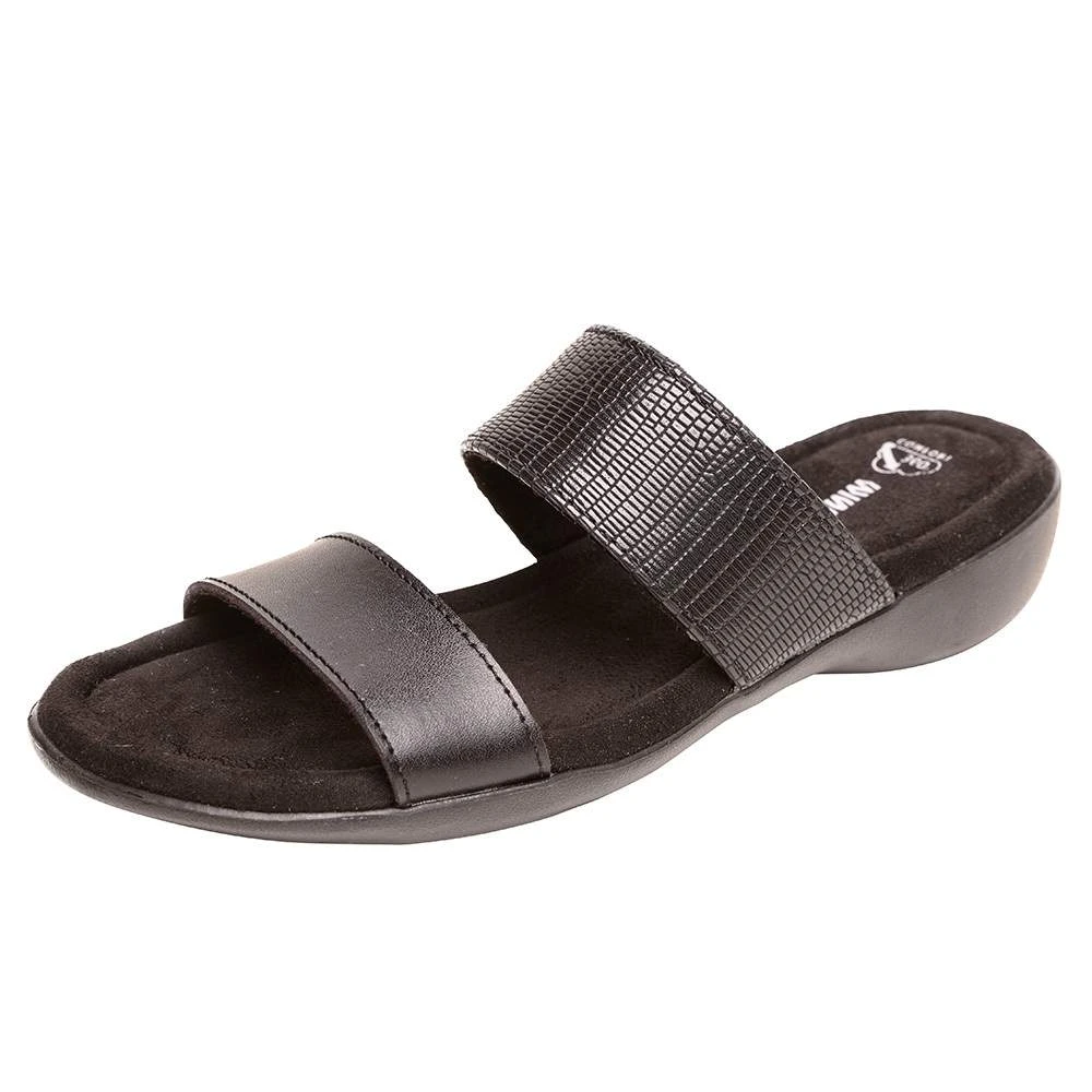 Sabina is simple and stylish. Your feet will stay comfortable all day long with the cushioned footbed and the leather lined upper straps.