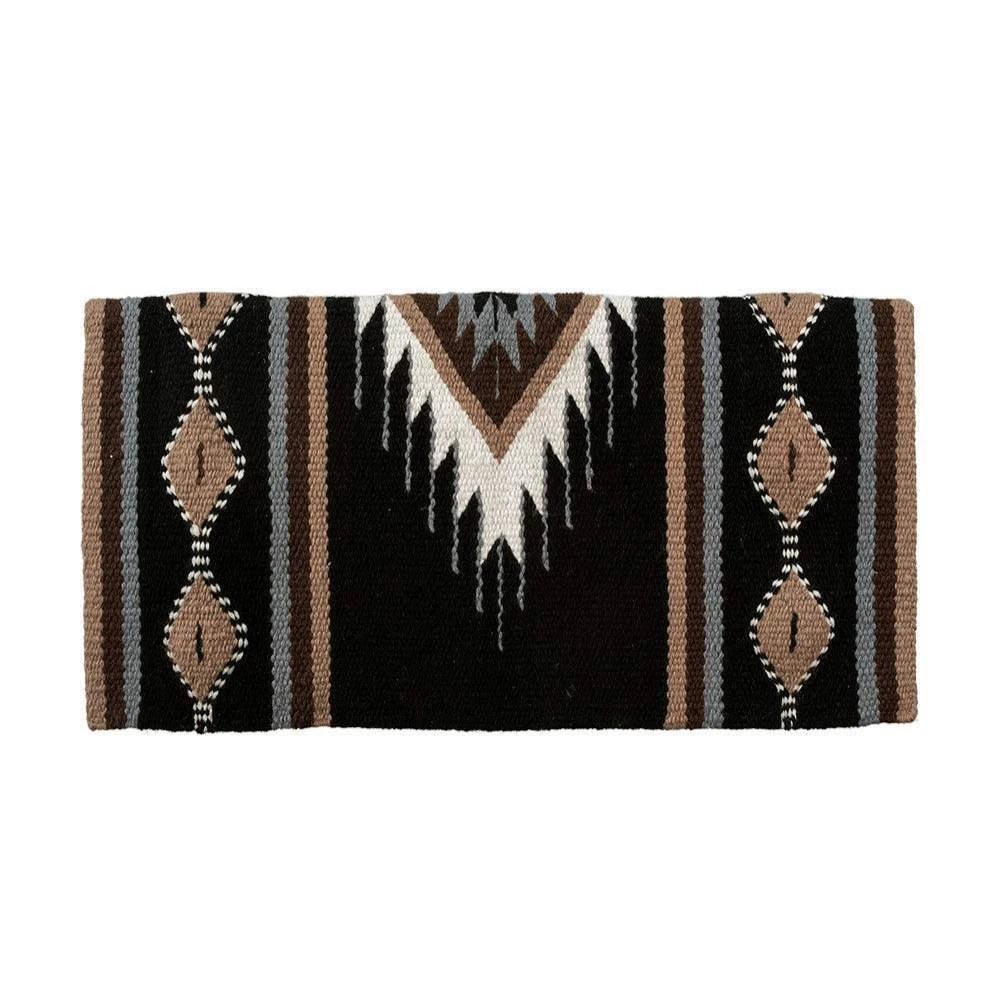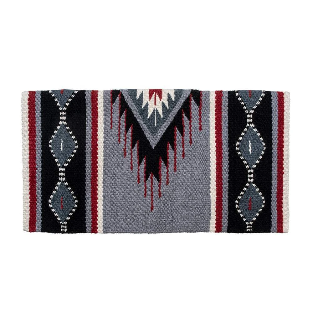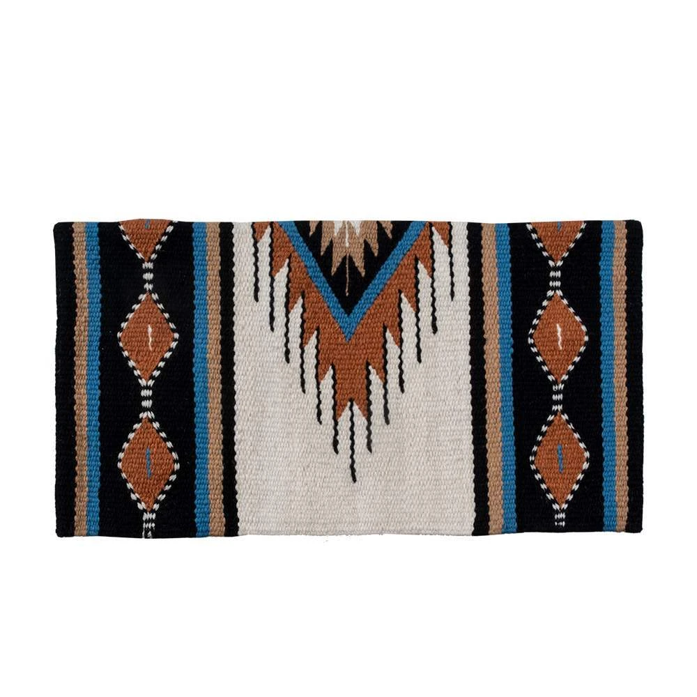 This new Del Rio Saddle Blanket by Mustang Manufacturing is custom designed with hand woven New Zealand wool. This saddle blanket is perfect to go over your daily work pads and make a statement in the show pen! New color variations and designs available. 36″ X 34″ 5007
