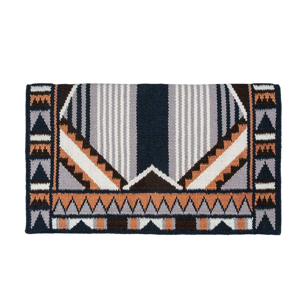 This “Highly Decorated” Saddle Blanket by Mustang Manufacturing is part of the custom designed, Good Medicine Collection. This saddle blanket is made with 100% New Zealand wool that is hand woven and custom designed. Make a statement in the show pen with these custom designed saddle pads or add it to your daily riding routine. The “Highly Decorated” saddle blanket was designed to honor the connection between horse, rider, and a unique culture. New color variations and designs available. 38″ X 34″ 1307