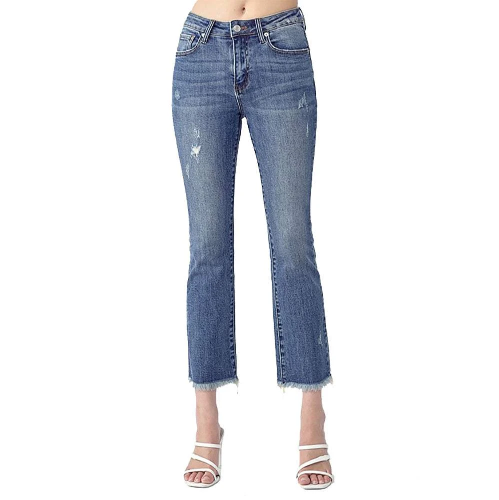 These medium washed jeans are distressed, slightly cropped, and will look cute with sandals and your favorite NRS shirt!