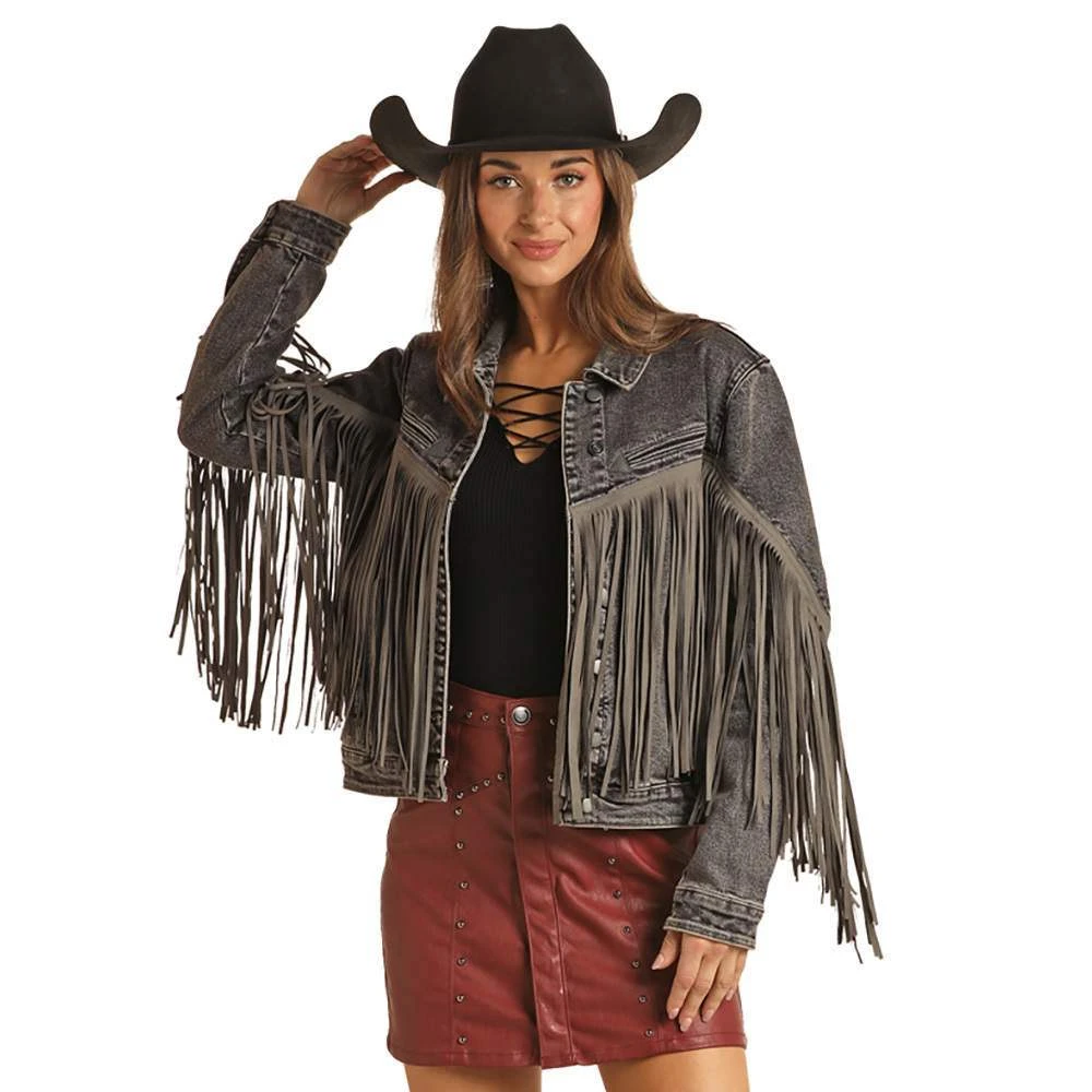 Stay warm and cozy in winters wearing cropped denim blazer by Rock & Roll Cowgirl