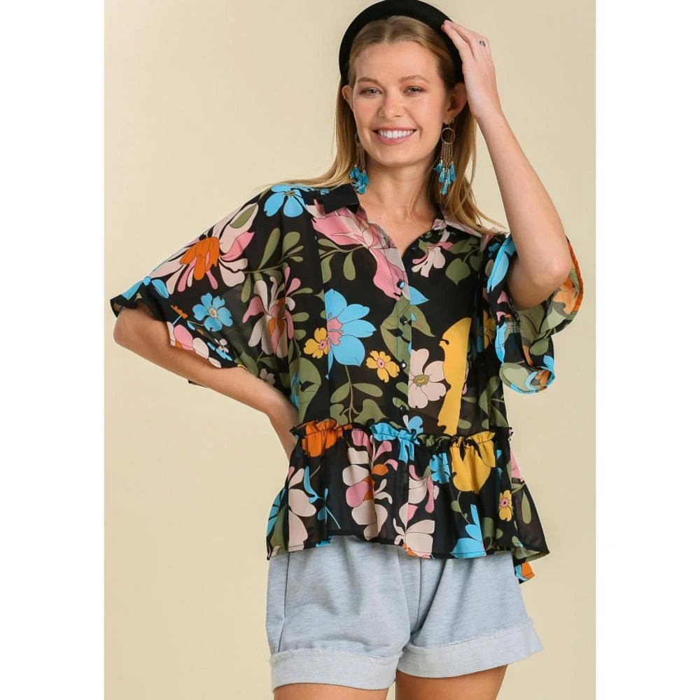 This short sleeve blouse with ruffles perfect for a day at the beach.